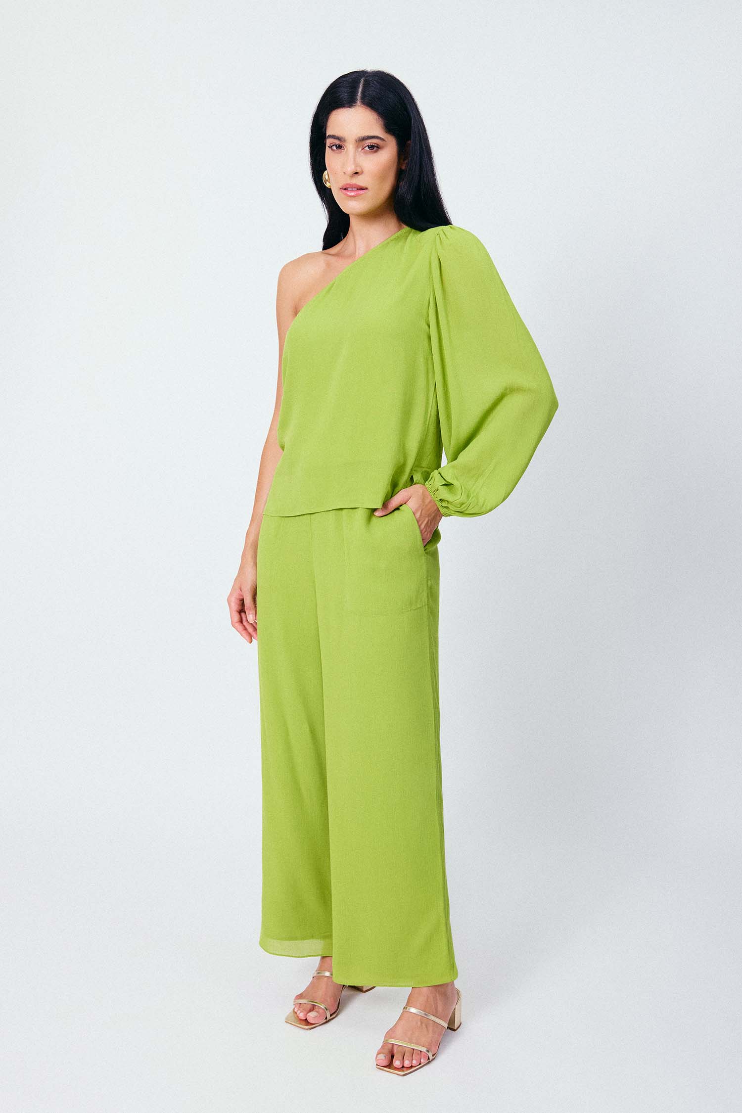 Seja para um evento casual chic ou uma celebração especial, a Blusa Ombro Só Gaia se adapta ao seu dia com graça e leveza. Combine-a com a Calça Reta Com Faixa Gaia para um look monocromático e impecável.
