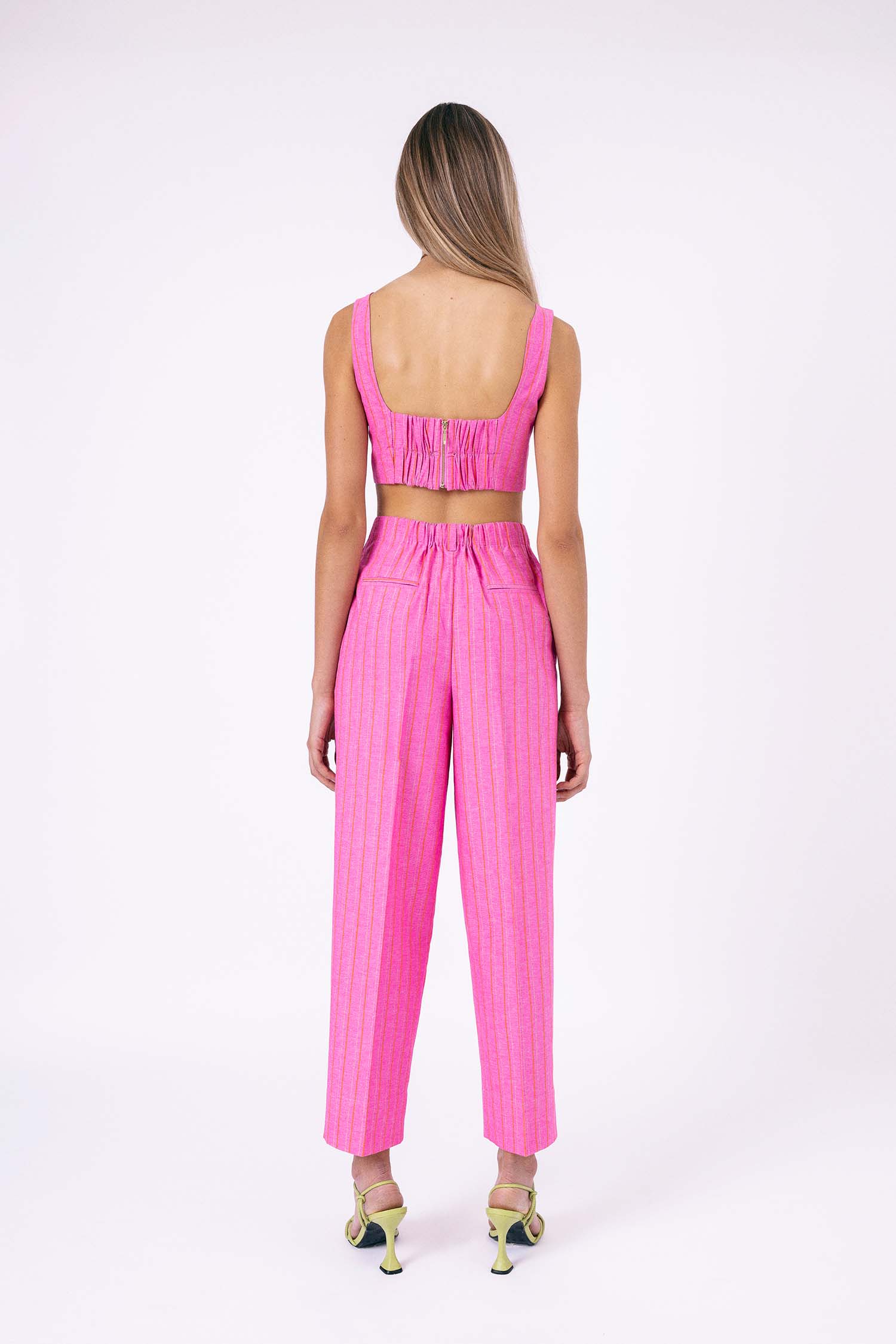 A Calça Alfaiataria Pregas traz elegância e conforto em uma peça feita para quem valoriza detalhes. Produzida em um tecido exclusivo de algodão sustentável com fios dourados de lurex, ela tem um brilho discreto e refinado. Com elástico nas costas para maior conforto e ajuste, além das pregas na frente, essa calça proporciona um caimento impecável, ideal para produções casuais ou sofisticadas.
