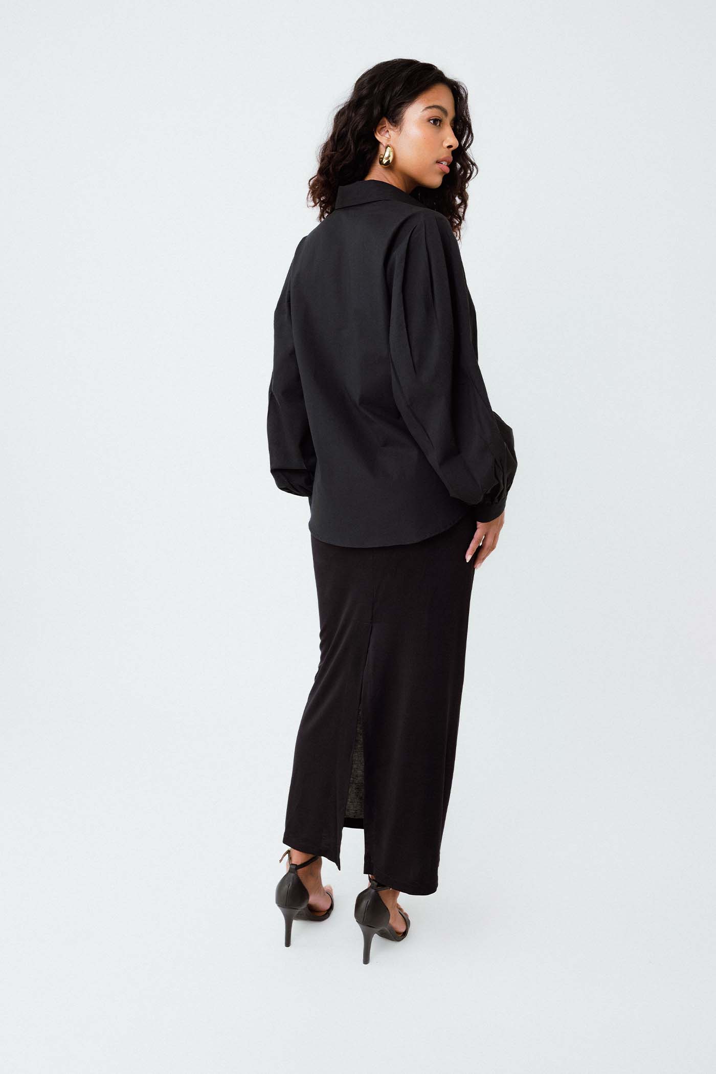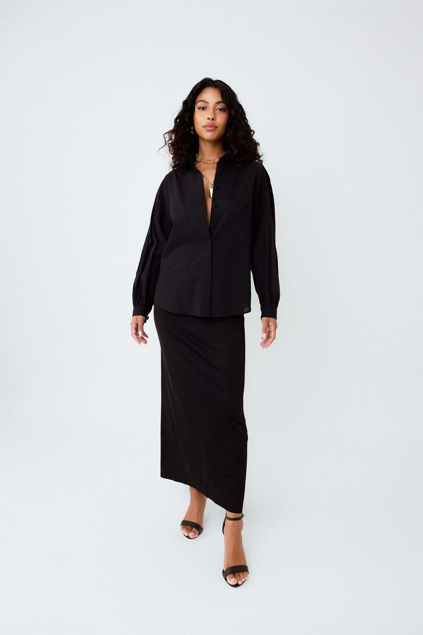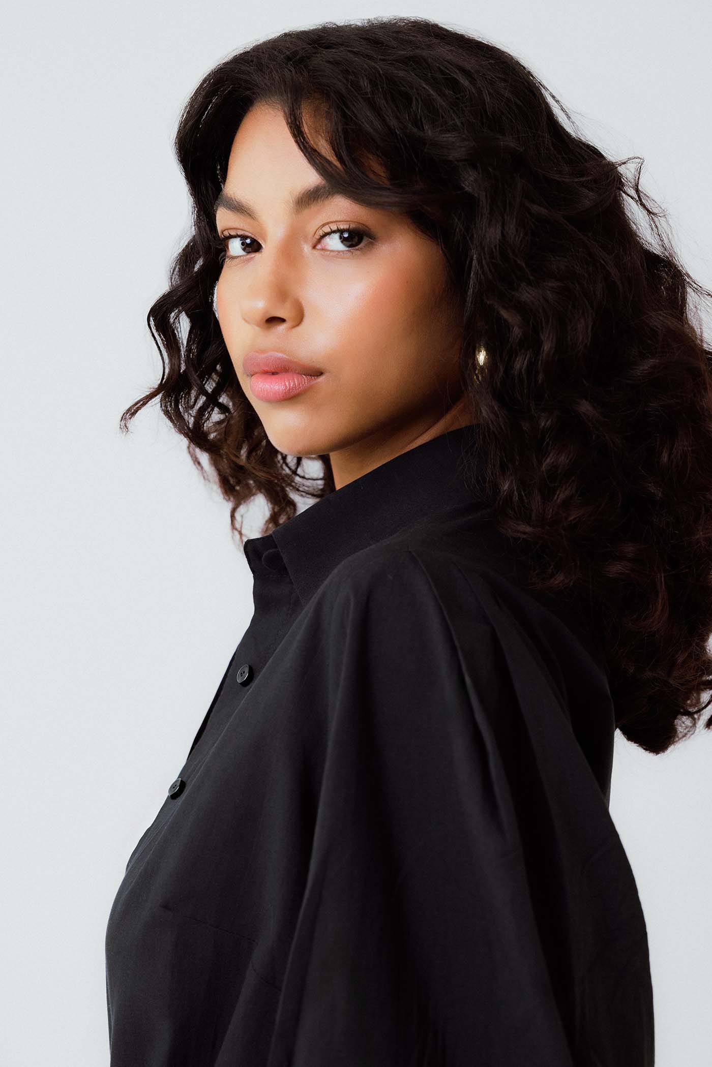 A Camisa Manga Longa Luar é feita para quem busca leveza com presença. Confeccionada em cambraia 100% algodão, seu tecido traz conforto e uma transparência sutil que imprime frescor ao visual. O destaque fica por conta das mangas amplas com pregas marcadas, que criam volume e movimento de forma expressiva. O abotoamento frontal com vista invisível confere acabamento limpo, enquanto o botão da gola, forrado no próprio tecido, adiciona um detalhe de sofisticação discreta. O shape solto completa a proposta, garantindo fluidez e versatilidade.