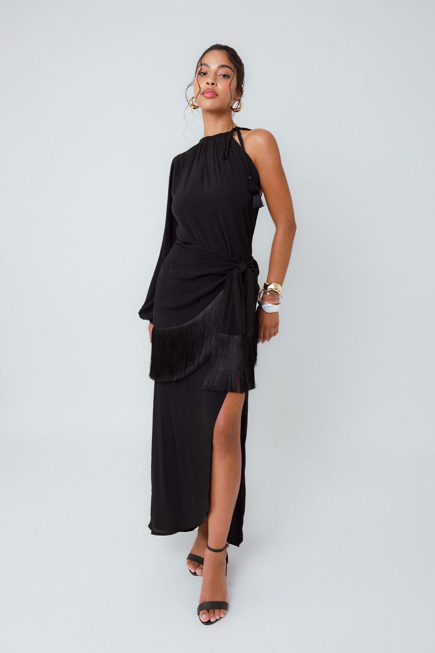 A Saia Midi Franjas da Família Crepúsculo é um convite ao movimento e à elegância. A modelagem com camadas assimétricas desenha a silhueta com fluidez e destaque, enquanto o acabamento em franjas de poliamida cria um efeito visual marcante a cada passo. A peça conta com uma amarração lateral que permite ajuste na cintura e elástico embutido nas costas para um caimento confortável e adaptável. A fenda lateral finaliza a composição com leveza e sensualidade.