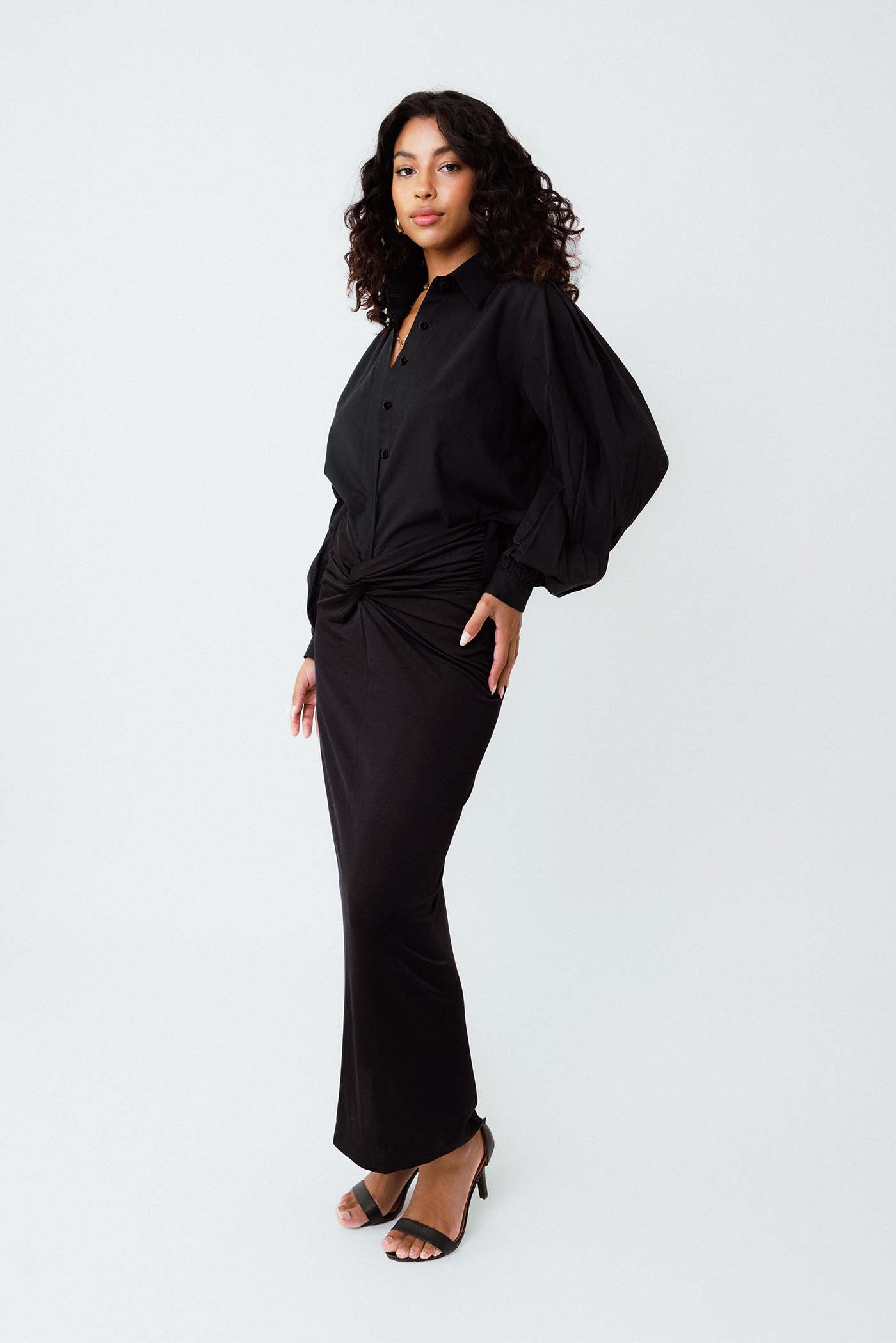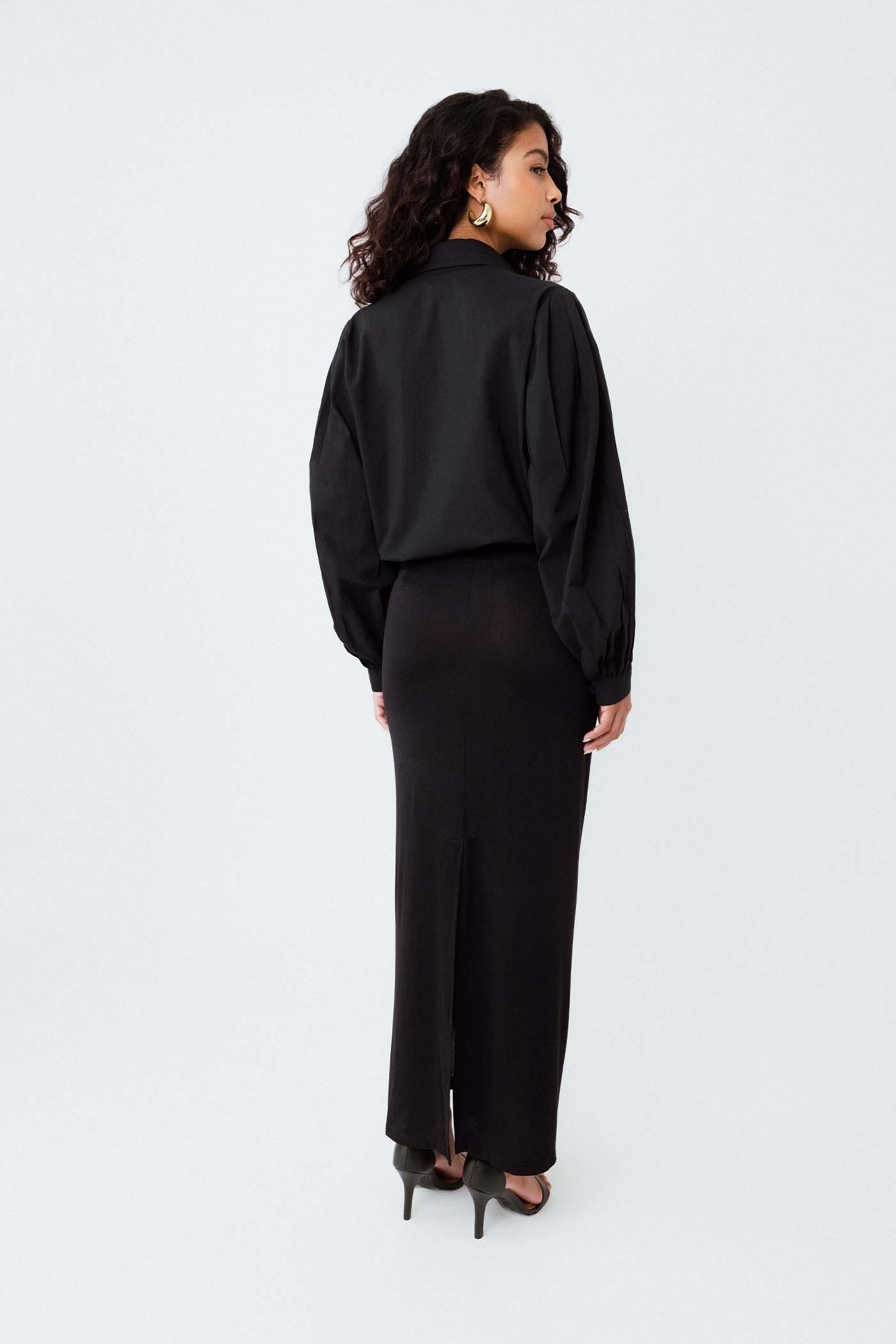 Com um caimento ajustado e uma modelagem que valoriza as curvas, a Saia Midi Nó Estrela é sofisticada e versátil. O detalhe do nó frontal drapeado confere charme e elegância ao visual, enquanto o elástico embutido nas costas garante conforto e adaptação ao corpo. O comprimento midi e a fenda traseira equilibram o visual com sensualidade e praticidade, permitindo movimento ao caminhar.