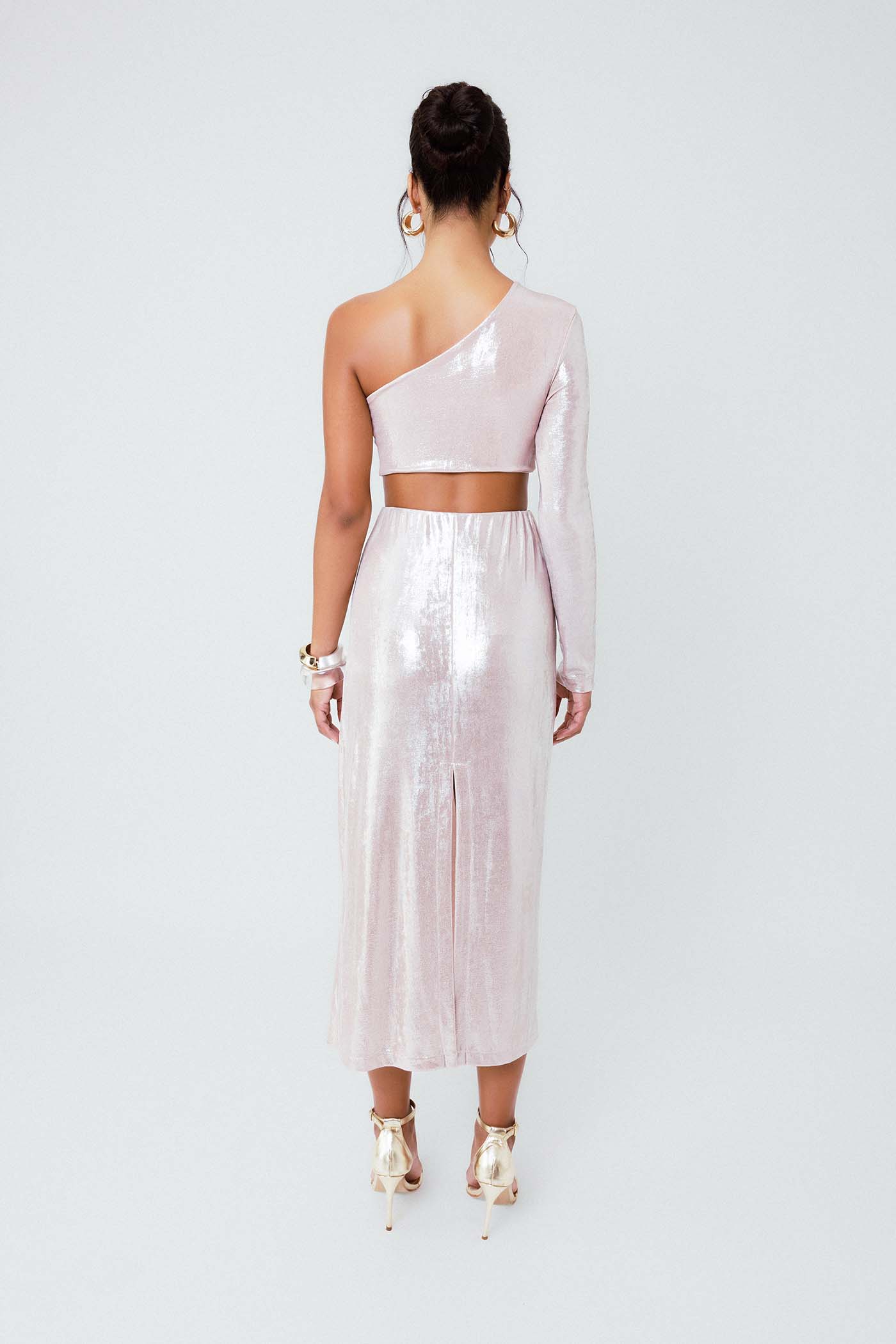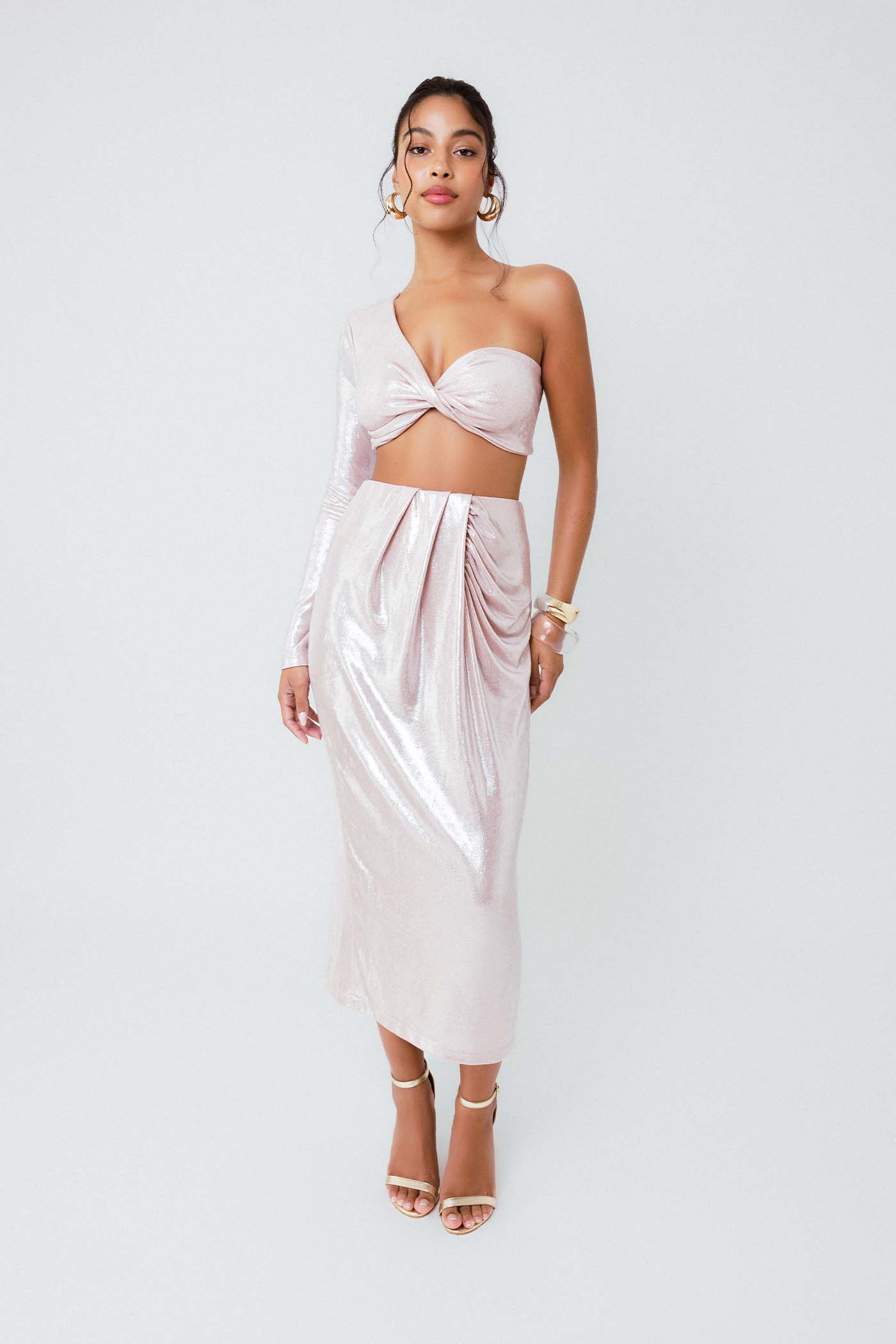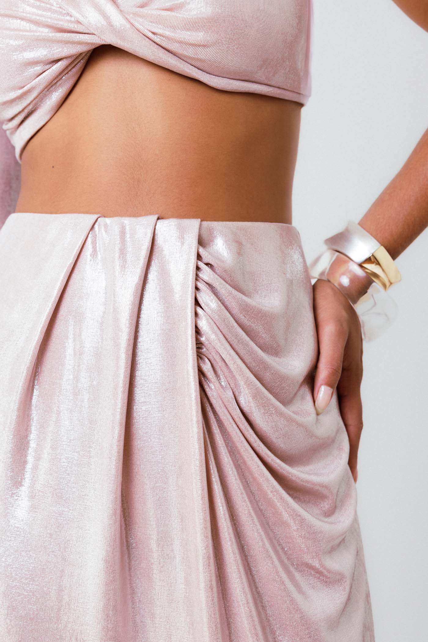 Com caimento impecável e brilho sofisticado, a Saia Midi Pregas Reflexo Rosa transforma qualquer produção em uma celebração de presença. Feita em Malha Glow, ela destaca o corpo com suas pregas marcadas e drapeado lateral que desenham a silhueta com leveza e movimento. A fenda traseira amplia a elegância da peça, enquanto o forro em tule garante conforto e segurança, evitando transparências indesejadas sem interferir na fluidez do tecido.