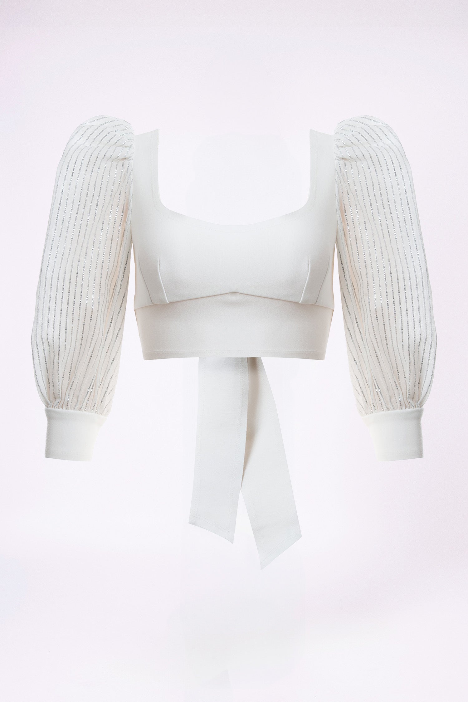Descubra o charme e a sofisticação do Top Manga 3/4 Bufante Centelha. Confeccionado em Malha Ponto Roma, este modelo apresenta mangas bufantes em Cambraia Foil, que conferem leveza e um toque de delicadeza. O decote quadrado é perfeito para valorizar o colo, enquanto a amarração nas costas proporciona ajuste ideal e um detalhe único que transforma qualquer look.