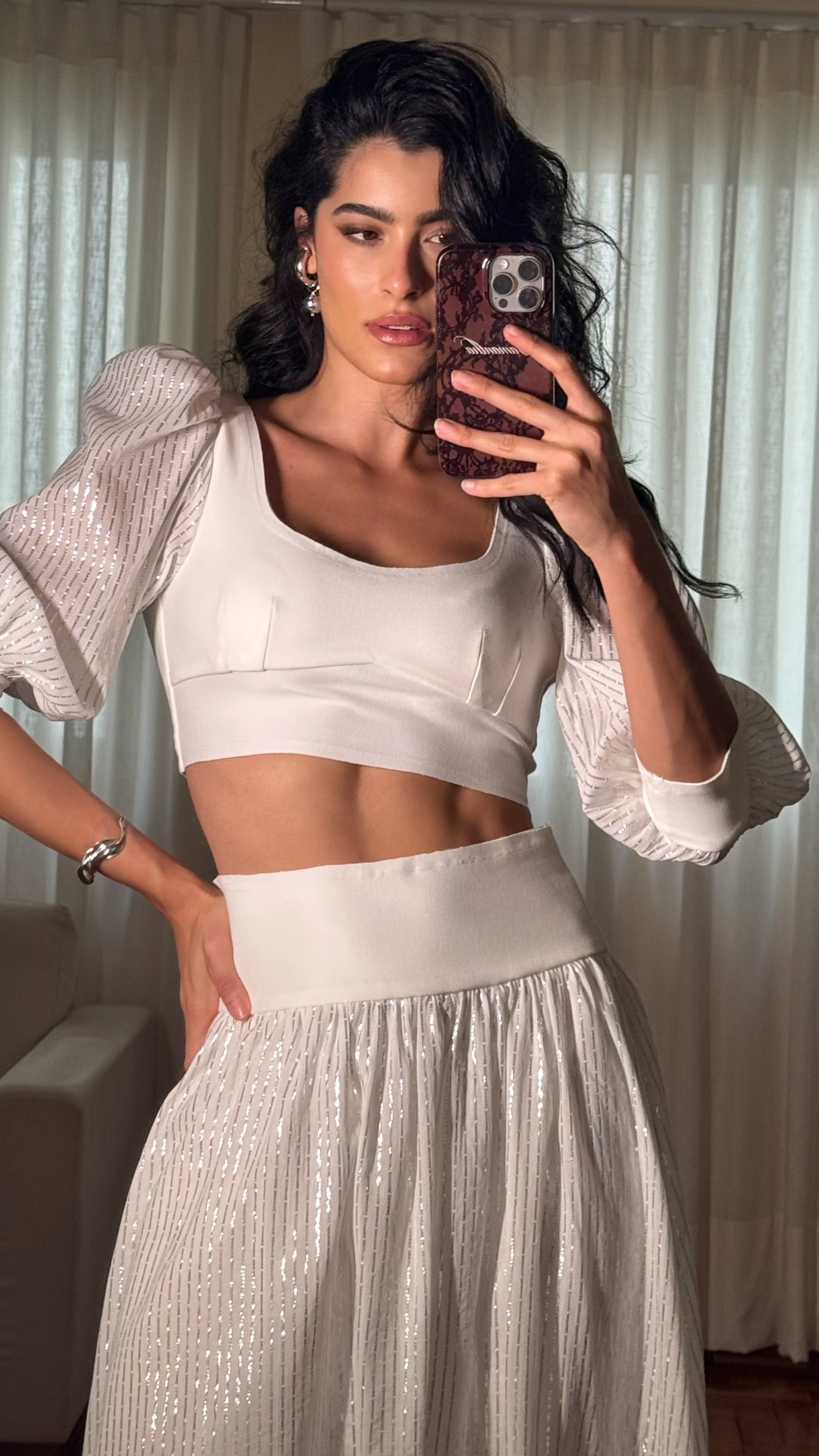 Dicas de estilo: combine com a Saia Midi Balonê Centelha para um conjunto que exala elegância, ou use com calças de alfaiataria para criar um visual moderno e versátil.
