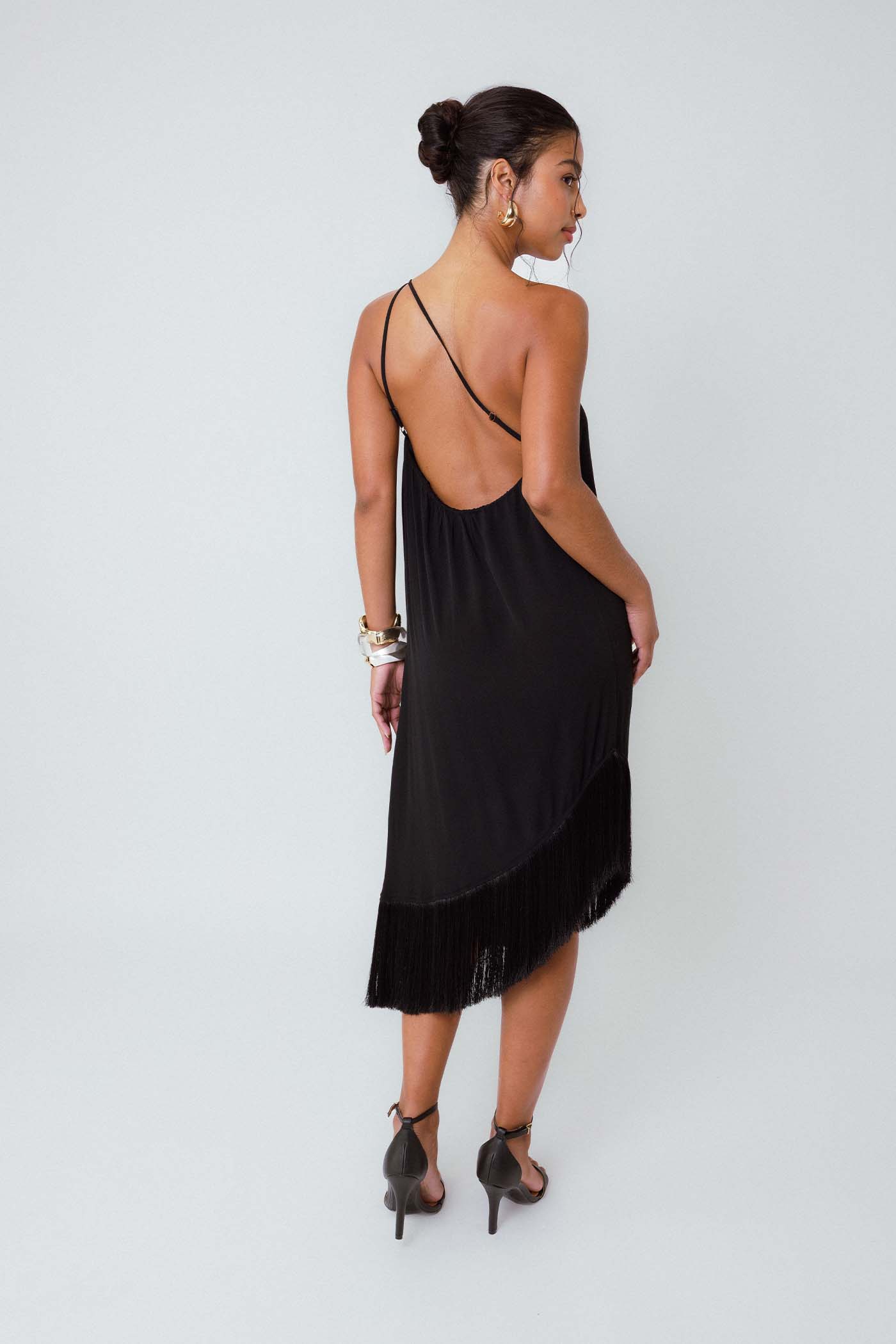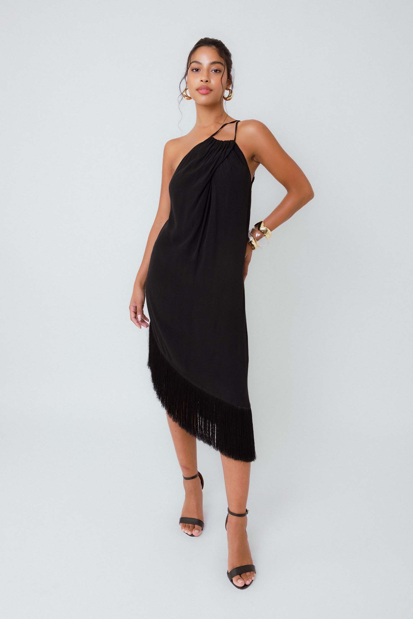 O Vestido Midi Franjas da Família Crepúsculo é pura elegância em movimento. Com um caimento fluido e alças finas que se cruzam nas costas, ele tem um desenho assimétrico com acabamento em franjas de poliamida, que acompanha o ritmo do corpo ao andar. O detalhe franzido no decote traz leve volume e valoriza o colo. A modelagem soltinha garante conforto, enquanto o elástico nas costas oferece melhor encaixe ao corpo.
